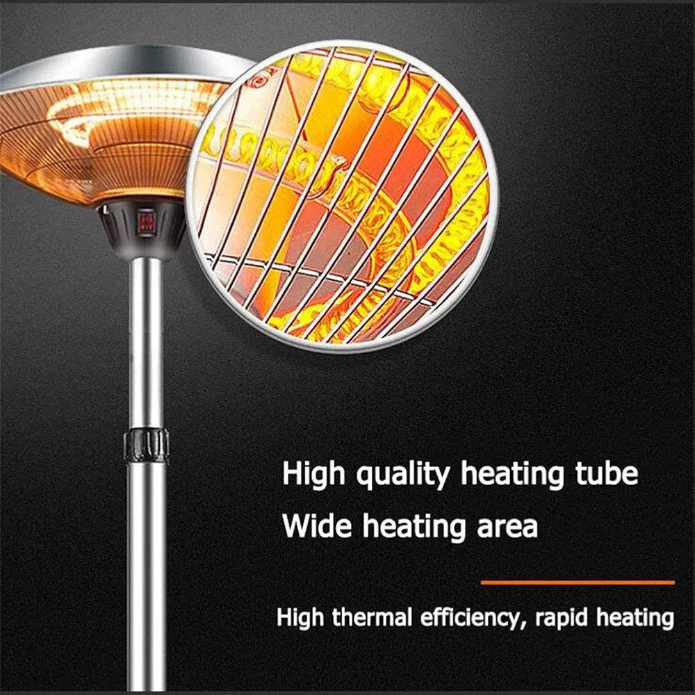 The Electric Freestanding Adjustable Outdoor Heater is designed to provide comfortable warmth in outdoor spaces such as patios, balconies, restaurants, and garden seating areas. It works like a warm sunlamp, giving direct heat to people nearby without warming the whole air, which makes it efficient and effective even on chilly evenings.