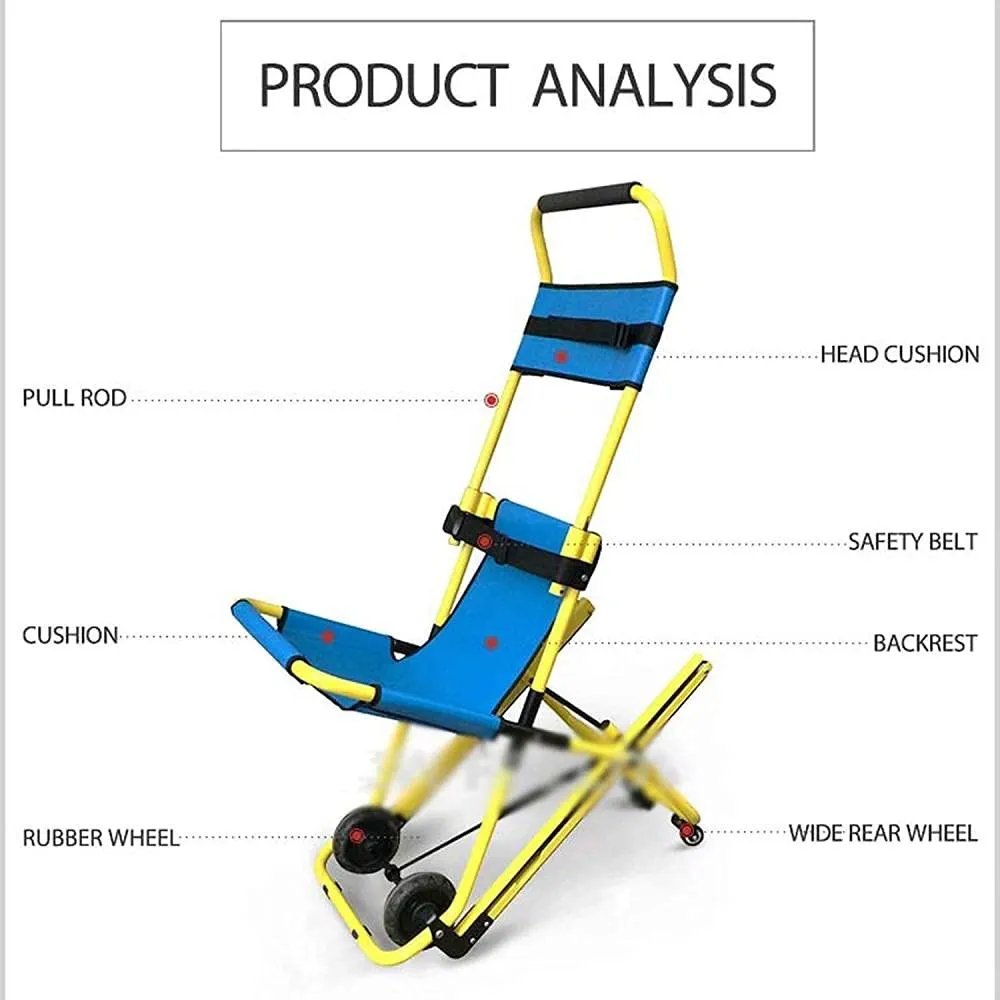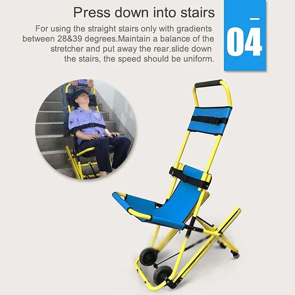 During emergencies, stairways can become the only exit route when elevators fail. Moving someone who is injured, elderly, or unable to walk down stairs can be slow and dangerous. This evacuation chair offers a safer, faster way for trained responders to help people descend steps with control, reducing risk for both the evacuee and the helper.