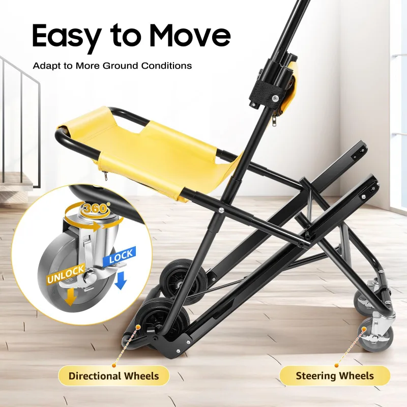 A portable folding stair chair is a commonly used equipment in emergency rescue work, and having it at home can provide the most timely assistance in case of accidents. The premium materials and stable structure give it a better load-bearing capacity. The wheel design also serves as a wheelchair for moving and transferring patients on the road, greatly improving the convenience of use. Please believe that this practical product will be a good helper for you!